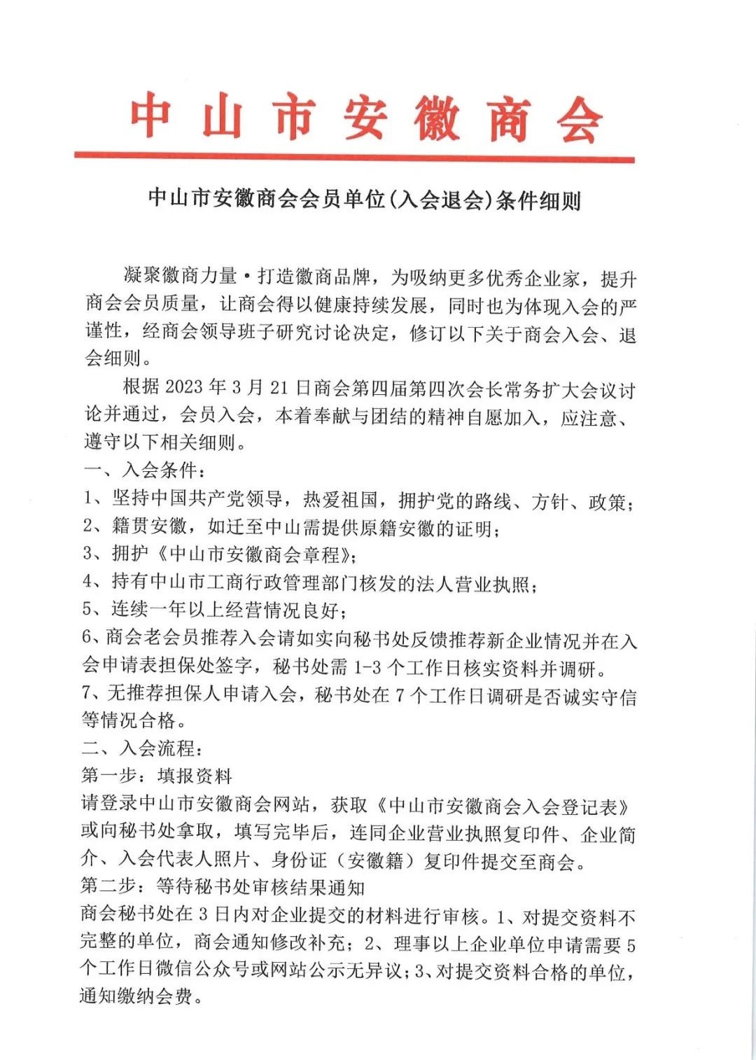 根据2023年3月21日商会第四届第四次会长常务扩大会议讨论并通过,会员入会,本着奉献与团结的精神自愿加入,应注意、遵守以下相关细则。