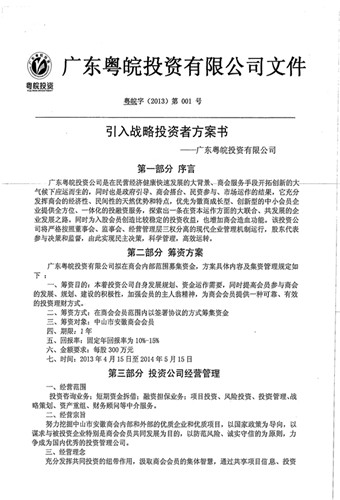 广东粤皖投资有限公司拟在商会内部范围募集资金,方案具体内容及集资管理规定如下 :