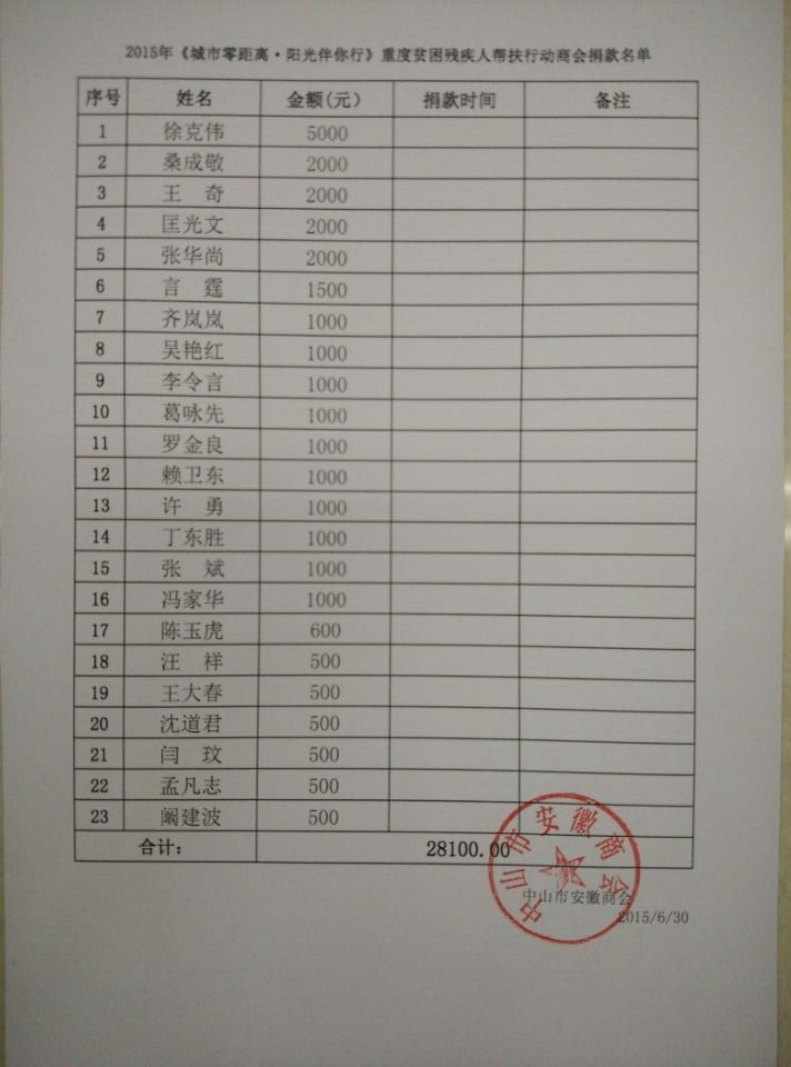 2015中山文创会商会书法家润笔公益慈善捐款名单