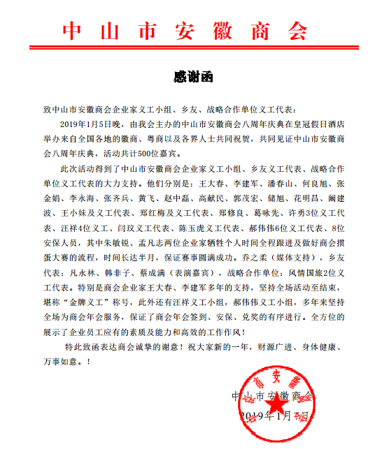 八周年庆典义工感谢函