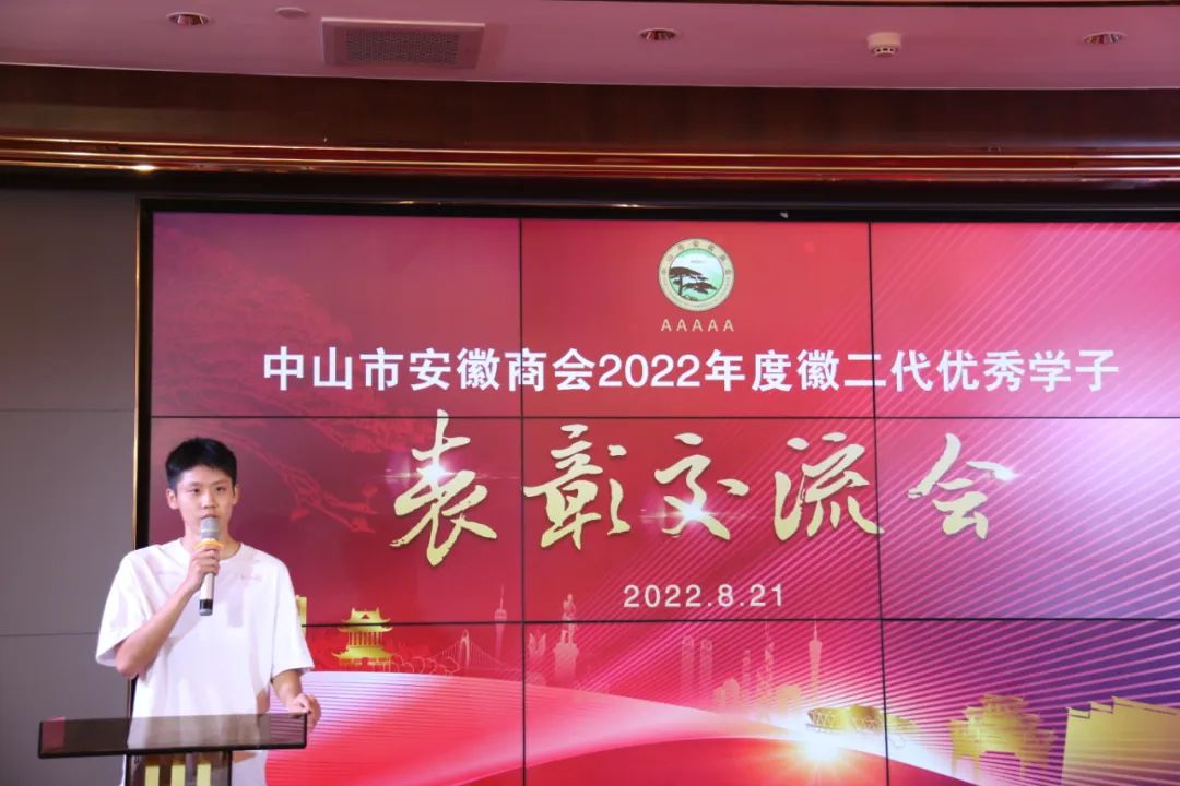 商会教育基金匡光文主任回顾了前三届徽二代优秀学子表彰情况,勉励学子无论走到哪里都要胸怀祖国,心系家乡。展望未来,也希望更多的爱心企业家积极捐助商会徽二代奖学金,爱心基金多了,才能扩大到更大的范围,鼓励更多的孩子。