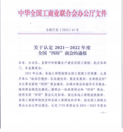 喜报!伟德官网电脑版荣获全国"四好"商会认定