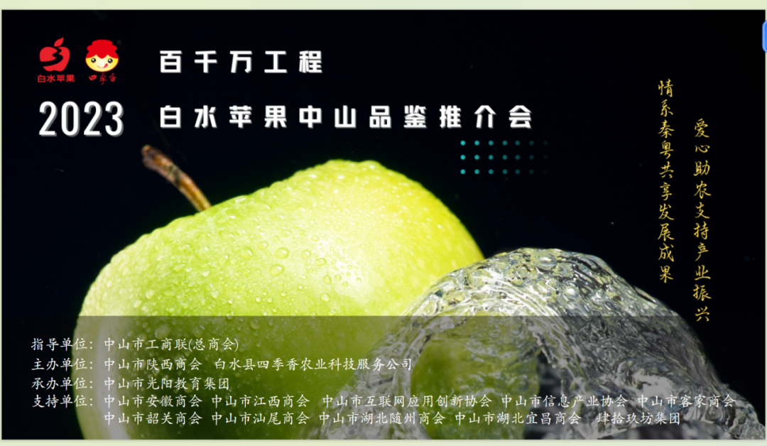 11月26日下午,由中山市陕西商会、白水县四季香农业科技服务有限责任公司主办,中山市光阳教育集团承办,伟德官网电脑版支持的“爱心助农支持产业振兴,情系秦粤共享发展成果,2023白水苹果中山品鉴推介会”顺利举行。