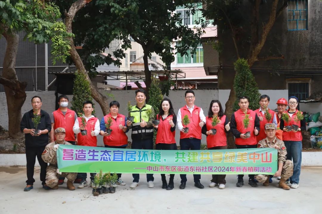 为加快推进绿美广东生态建设,全面实施全民爱绿护绿行动。东裕社区驻点团队、社区党委、经联社、“香山红社”共建单位中山安徽商会党支部联合开展“营造生态宜居环境 共建共享绿美中山”新春植树活动。
