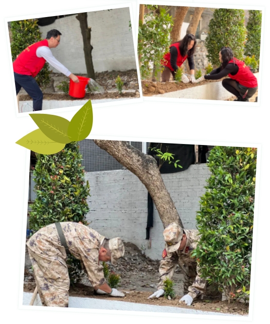 植树现场,大家干劲十足,三五人一组,有的挥锹铲土、有的施撒肥料、有的扶正树苗、有的盖土踩实,一起为东裕绿起来、美起来,增添“绿”量。通过协同配合,共种植了小苗木红车、大苗木红车、白花等树木几十余棵,为营造生态宜居环境、共建共享绿美中山尽自己的一份力量。