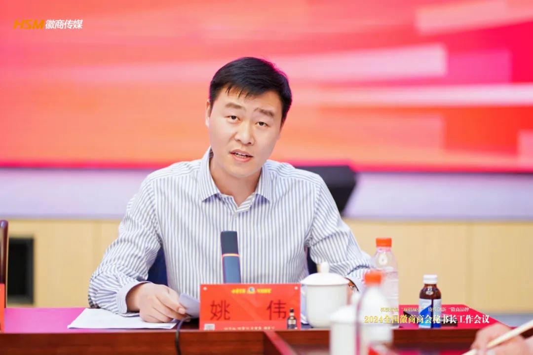 5月10日,2024全国徽商商会秘书长工作会议在亳州召开。会议主题是:抓铁有痕“双招双引”, 赓续创新“徽商品牌”。会议由我会常务副秘书长姚伟主持会议。古井集团党委书记、董事长、我会常务副会长梁金辉会见了全体会议代表,古井集团党委副书记、总裁李培辉致欢迎词,会议指导单位安徽省合作交流办公室经济联络处处长王成君发表了讲话。
