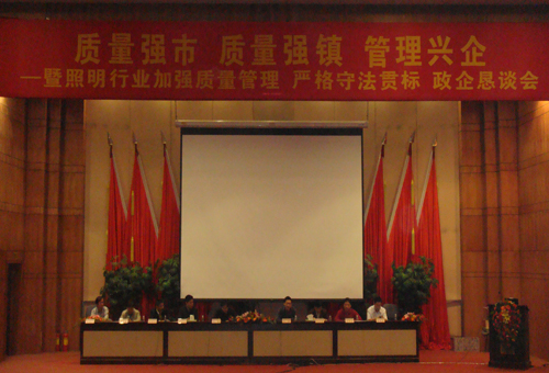 此次恳谈会上中山市古镇镇人民政府镇长助理江骥、CQC广州分中心审查部部长冯健、中山市质量技术监督局质量科科长何庆培、中山市质量技术监督局稽查分局副局长卢俊杰分别在会上作“质量强镇”政策解读、3C认证监管新形势及控制器GB15910国标换版形势、“质量强省、质量强市”政策导向、灯饰企业查处情况通报及质量法规有关处罚条款的报告及说明。最后,中山市质量计量监督检测所副所长彭振坚对市场抽查不合格状况进行了分析。