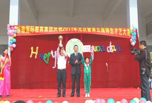 2011年元旦前夕,中山市黄山(安徽)商会常务副会长、新徽国际教育集团董事长高德富先生率领组织该集团第五届师生才艺大赛,欢庆元旦佳节。