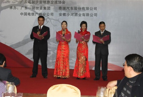 团拜会由安徽省政府驻广办主任朱丹致辞,安徽省政府发来贺电,介绍了安徽2010年社会、经济发展等情况,并祝贺大会圆满成功!大会有精彩绝伦的歌舞、杂技等表演和抽奖环节。特别是我们商会选送节目,安徽地方方言诗朗诵《祖国赞美诗》,是由张金明、沈围围、葛咏先、纪小敏四人用安徽宣州、合肥、安庆、淮北方言表演,令人捧腹大笑和满堂喝彩!