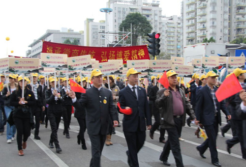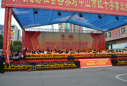 同襄善举担道义,万人同行齐修身。2012年2月6日是中国农历正月元宵节,这天阳光灿烂,彩旗、笑脸把兴中道装扮成欢乐的海洋,中山第二十五届慈善万人行起步典礼在这里隆重举行,128支共2万多人参加的巡游队伍,在“我们与爱同行”激情乐曲中列队前行,汇聚博爱洪流,展示伟人故里别具特色的慈善文化;自发来到现场观看起步典礼的各届群众不断鼓掌欢迎,共享文明城市建设及全民修身成果。2012年慈善万人行经过两个多月的义演、义卖和义捐等系列活动,共筹得善款8006.13万元,再创历史新高。伟德官网电脑版组织了会员及会员单位代表共137人的游行方阵参加了本届慈善万人行活动,并捐款2万元。