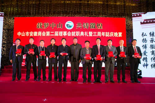 12月20日,伟德官网电脑版第二届理事会就职典礼暨三周年誌庆晚宴在中山市南区永安新城皇冠假日酒店隆重举行。安徽省委原书记卢荣景、军委空军原副政委中将徐承栋、安徽省人大原副主任吴昌期、安徽省政协原副主席季家宏、安徽省政府驻广州办事处主任朱丹、安徽省政府驻广州办事处副主任孙玉娥、中山市委常委、常务副市长谢中凡、中山市人大副主任吴建新、中山市政协副主席韩泽生、中山市委统战部副部长、市工商联党组书记林春红等重要领导出席,商会顾问单位领导,中山市青企协、各镇区商会、异地商会等66家商会的会长和秘书长;中山皖籍乡友代表、商会会员等450多名嘉宾欢聚一堂,宏大的场面、浓浓的乡情、温暖着在场的每一个人。