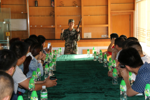 在大家的鼓掌声中,军分区政治部副团职干事赵周彦中校带领企业家们参观国防教育基地并带领企业家们进行了一场实弹射击。