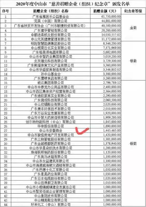 为深入贯彻落实《中华人民共和国慈善法》,根据《中山市慈善事业促进办法》相关要求,2020年,我市启动了首届中山“慈善纪念章”颁发和“慈善捐赠榜”编制工作。经过精心的评选和编制工作,日前经市政府同意,确定了上述名单。