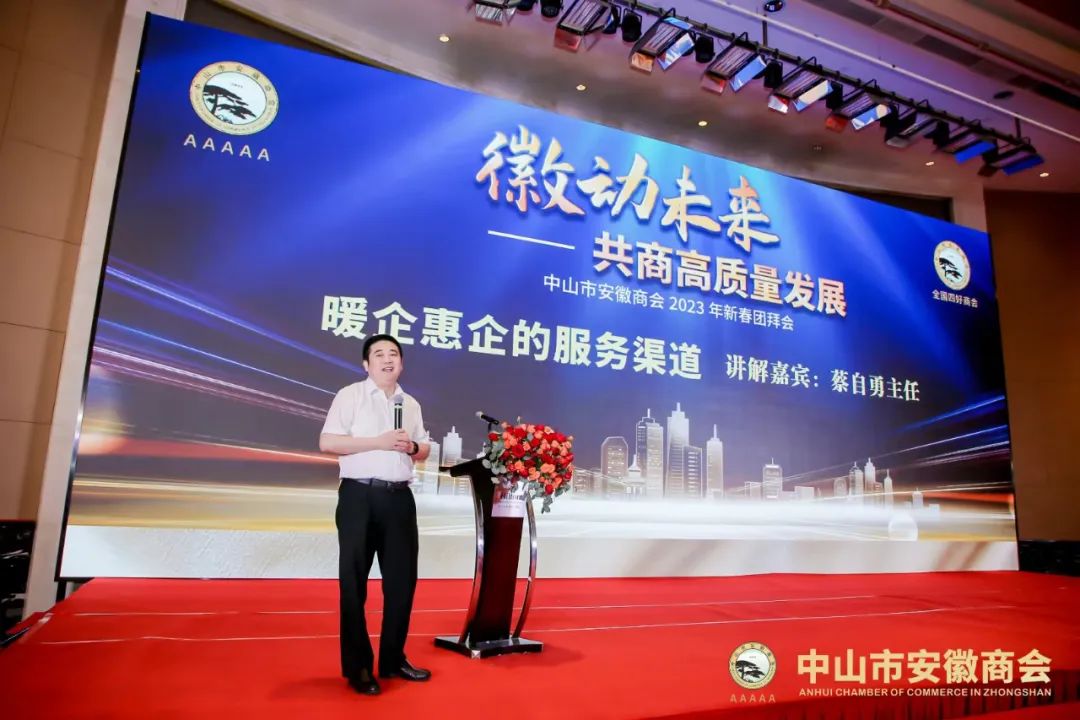 为了更好的服务企业家,让企业第一时间获悉中山的惠企政策,中山市政务服务数据管理局,监督科科长李琰讲解“政务服务那些你不知道的事”;中山市12345投诉举报平台管理中心蔡自勇主任分享暖企惠企的服务渠道。会上,2位领导公开了自己的联系方式并建立了惠企政策发布群,诚意满满,认真为会员企业做服务,让现场的企业家们很感动。