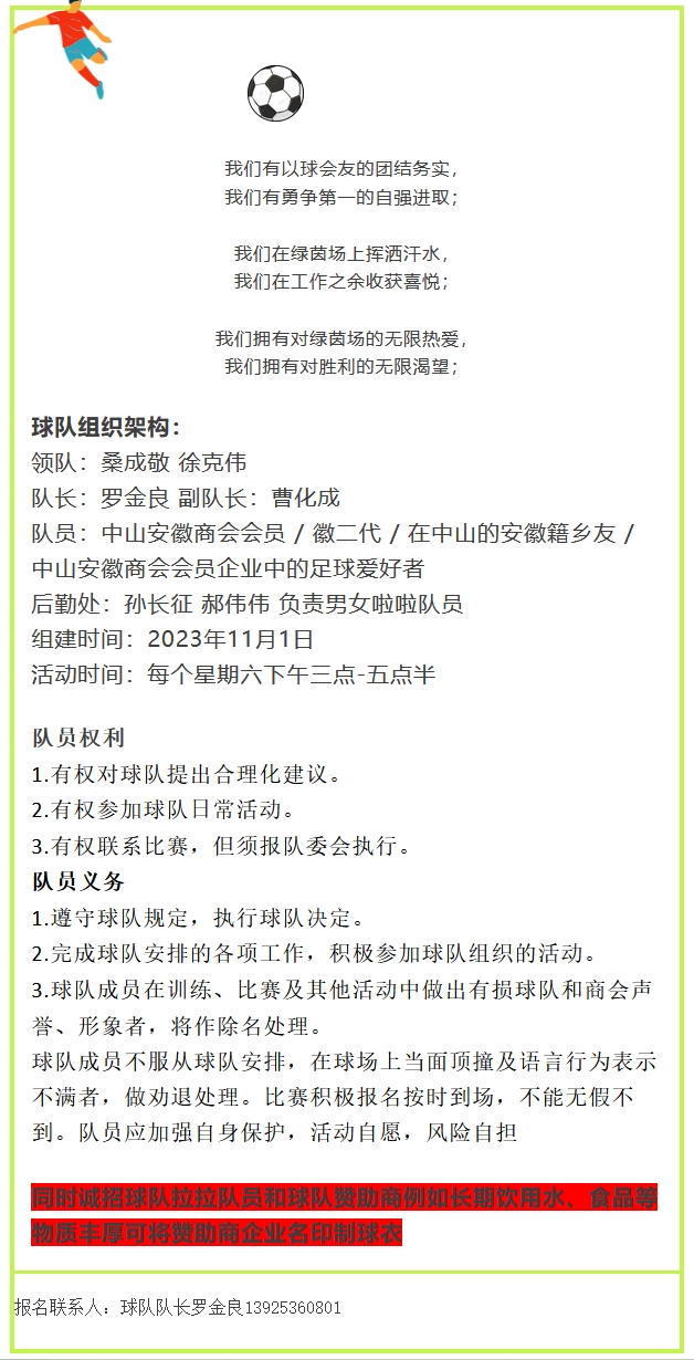 中山徽商足球队招新|“足”够精彩 等你而来