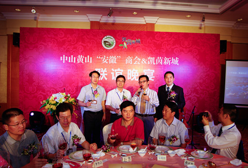 与凯茵新城总经理孙杨杰(右一)、销售部副总监罗锟(右二)晚宴上敬酒