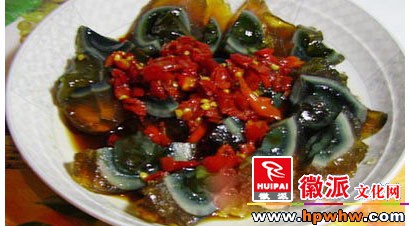 第一名天长地处高邮湖畔,是个典型的“鱼米之乡”。境内水网纵横,菱藕遍地,鱼虾满塘,被称为“皖东的威尼斯”,历来就是水产品和家禽养殖之乡。天长农民具有悠久的养鸭历史和丰富的养鸭经验,广大农村是家家养老鸭,户户有鸭蛋。天长鸭蛋更以蛋大、壳薄、黄多、质好著称。与享誉全球的高邮湖双黄鸭蛋齐名媲美。 据县志记载,早在清朝天长民间就开始用石灰、食盐、草灰、茶叶等配料制作皮蛋。曾任上海中华工业研究所研究员、前国民中央大学、复旦大学、四川大学教授的著名旅日工人领袖王兆澄烈士(天长市铜城镇人,1948年8月8日因拒绝赴台,在英勇的爱国护校斗争中被国民党杀害,1990年被追认为革命烈士),1926年曾因得益于天长生产皮蛋的悠久历史和丰富经验,利用自己渊博的学识与独到见解,撰写了《皮蛋文献考》一文获得了化学博士学位。在当时的日本帝国大学轰动一时,王兆澄因此被戏称为“皮蛋博士”。此后,天长的皮蛋生产逐渐走上了规范化、科学化的道路。 天长京彩皮蛋工艺严格。生蛋进厂前经目测、手敲、耳听、光照等多道工序把关。大小均匀、外壳完整、蛋色相近、蛋质新鲜的生蛋方可入选。变蛋主料有石灰、碱粉、草灰、食盐、茶叶、氧化铅等,按一定比例加水熬成糊状冷却,生蛋在料浆中浸泡30天左右起缸,再经二次检验,依大小和质量不同,分成不同等级,用原料液和以稻糠、黄泥包裹,外加塑料袋密封装箱或装缸备用。如此包装,一是可以保证皮蛋不因空气腐蚀变黄变质,便于长久保存;二是可以使皮蛋在运输过程中不致相互碰撞而破损。 天长生产的京彩松花皮蛋,大小均匀,包装讲究。剥壳不沾连,蛋白表面光洁亮泽,蛋体混凝结晶,为褐绿色半透明体。蛋白表面,松花清晰美观,深及表里。蛋黄松软,黄心呈糖衣状。蛋壳剥去,整个皮蛋似芙蓉出水,光彩华丽,清香怡人。食用时,蛋白洁爽,蛋黄味浓,相辅相成,天然一章。用色香味俱全来概括,也是无过之而不及。天长松花皮蛋装盘时,一般切成花瓣状或园饼状。分割得黄白均等。再根据不同的食用爱好,或佐以香醋、酱油,或沾上麻油、辣酱。按天长地方吃法,则往往用一张薄薄的熟肥咸肉片包裹一块皮蛋,一同进食。这样吃,不但肥肉不腻,而且皮蛋又没有碱味。真叫人吃这回,想下回,吃一次,记一生。 |