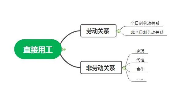 直接用工是目前企业中最主流的用工模式,可以分为劳动关系与非劳动关系两大类。 劳动关系中,包含全日制劳动关系与非全日制劳动关系;非劳动关系中,则有劳务、承揽等多种形式。
